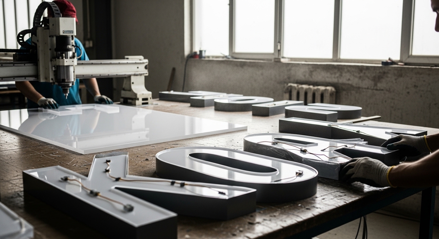 Alüminyum, pleksi ve paslanmaz seçenekleriyle ışıklı/ışıksız kutu harf üretimi ve profesyonel montaj.